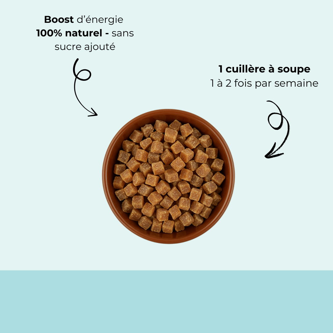 Les fruits séchés, bien que très appréciés, sont naturellement riches en sucre. Pour éviter les problèmes de poids et de digestion, limitez les quantités à de petites portions et n’en donnez pas trop souvent.